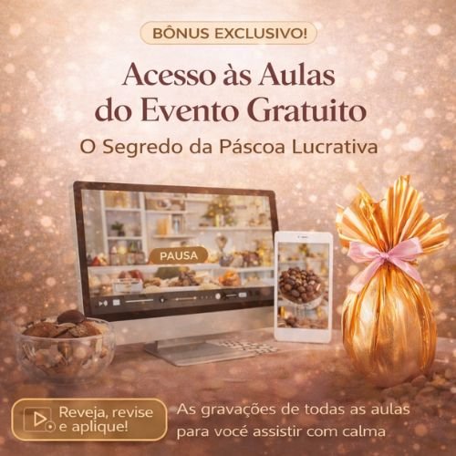 Você aprende a construir uma Páscoa lucrativa, estratégica e profissional do início ao fim.